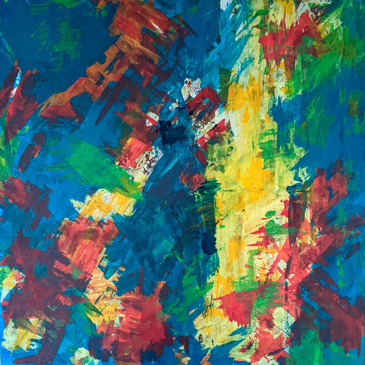 Ich arbeite aber auch gern mit Spachteln, Palettmesser, Strukturpaste und anderen Gegenständen. Die Farben begeistern mich immer wieder. Bewusst habe ich nie einen Titel, denn der Betrachter soll selbst mit seiner Fantasie die Bilder interpretieren.