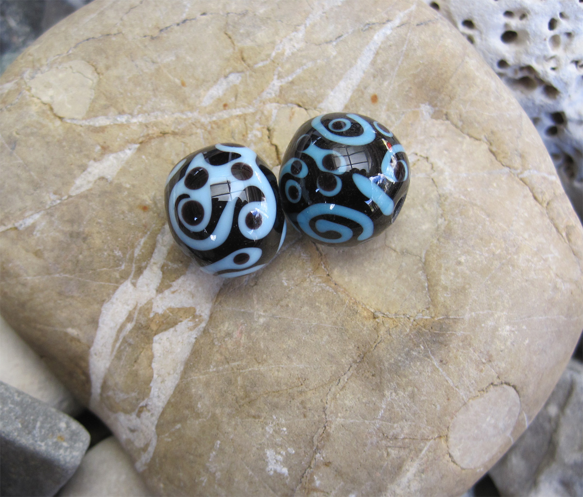 Ich arbeite am liebsten mit Soda Lime Glass (Weichglas, COE 104) aus den Murano Glashütten und aus dem traditionellen Lauscha (Deutschland).