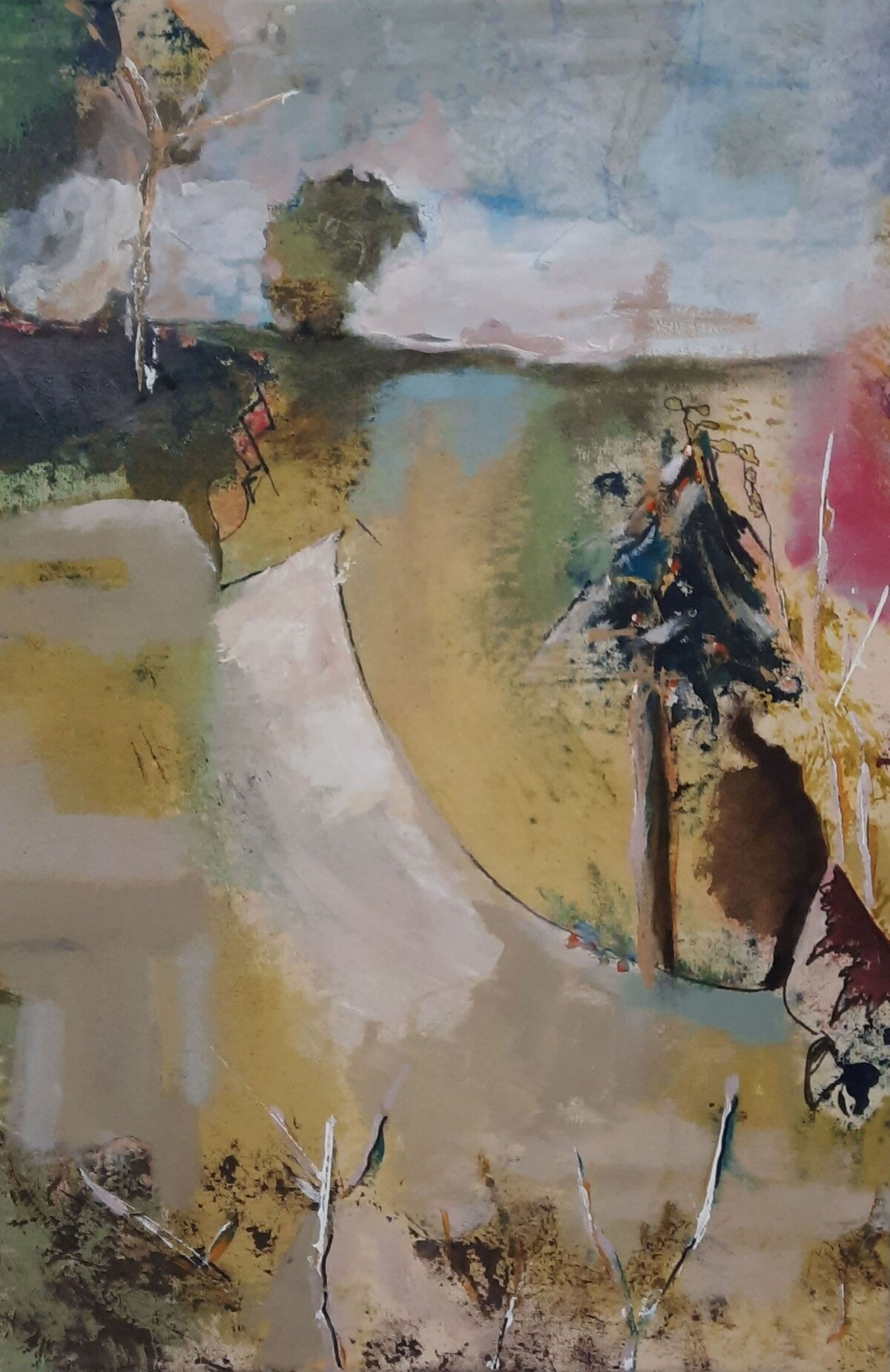Tempera male, mit Pastelkreide arbeite, ich bin frei von allen Zwängen.